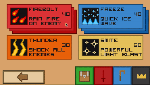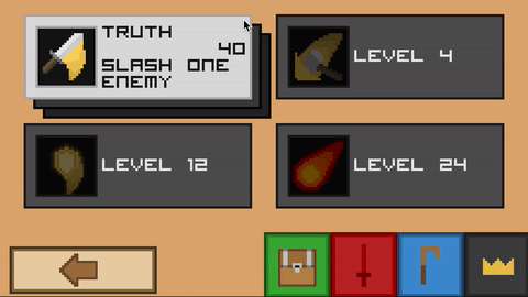The Unit Screen shows more detailed information about your unit, such as their stats, equipment, attacks, and more! To switch between the different tabs in the Unit Screen you click on the icons in the bottom of the screen. Similar to tabbing between different types of attacks / spells/ and items in the Battle Screen. Under the equipment tab you will have a list of your currently equipped items, your stats are displayed on the right, you can see how close you are to leveling up, and your class is displayed! Under the attack and spells tab, you can view your attacks and spells! Spells and attacks that are not yet unlocked will be grayed out and display the level that they unlock at! You can scroll between different combo’s by clicking on the attack tile. This brings the next attack in the combo to the front of the screen. As you can see combo attacks get more and more powerful as the combo goes on!