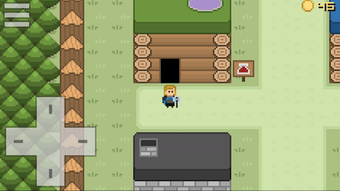 The first map I created is the starting zone, a mysterious cave where you first enter the world of Pixelot! No spoilers yet, but once i implement scripting there will be some dialogue to explain the world of Pixelot and the story! The big thing about this map is that i finally implemented transitioning from one map to another. As you can see the character exits the cave and enters the South Wood! The second map that I created is the first town, Luma!